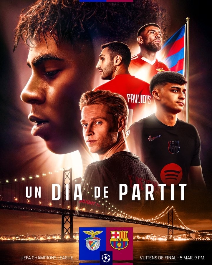 2025-03-05 20:24:08巴薩曬海報(bào)預(yù)熱與本菲卡比賽,亞馬爾、德容、佩德里出鏡