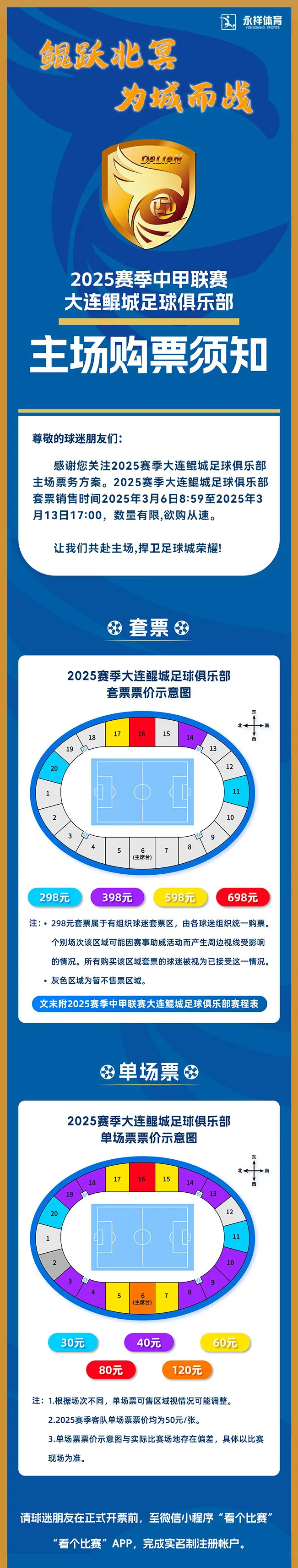 2025-03-05 20:25:31開票倒計(jì)時(shí)1天!(附2025賽季大連鯤城足球俱樂部賽程)
