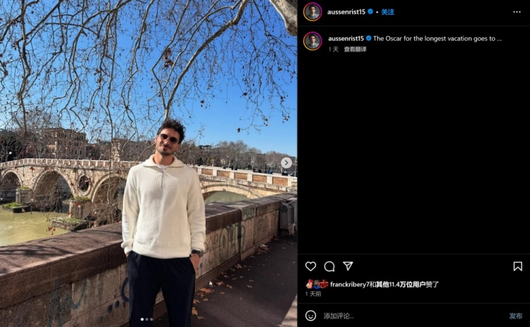 昨天,胡梅爾斯曬出自己在羅馬游玩的照片,由于正值奧斯卡頒獎時間,他配文:奧斯卡最長假期獎頒發(fā)給......。不過,由于在對陣科莫的比賽中,胡梅爾斯替補未出場。因此,有網(wǎng)友認為胡梅爾斯的配文是在暗諷拉涅利沒給自己出場機會。