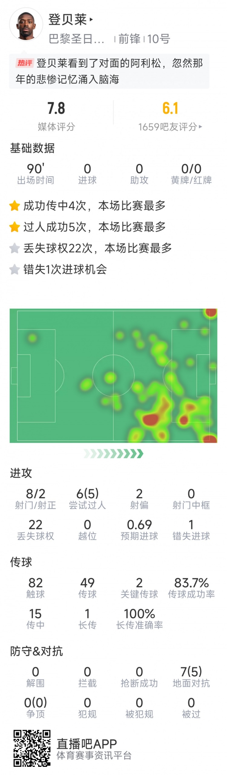 2025-03-06 10:31:27登貝萊本場數(shù)據(jù):8射2正,1次錯失良機(jī),2次關(guān)鍵傳球,5次過人