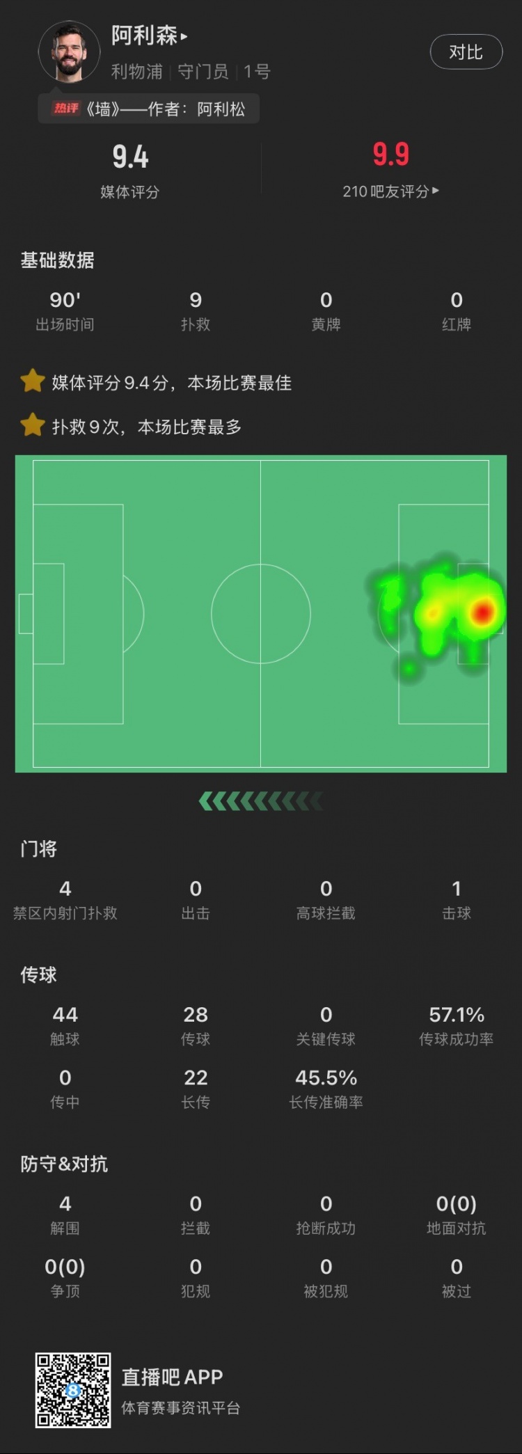 2025-03-06 10:35:05頭號(hào)功臣!阿利森本場(chǎng):9次撲救,被射27腳0丟球,9.4分全場(chǎng)最高