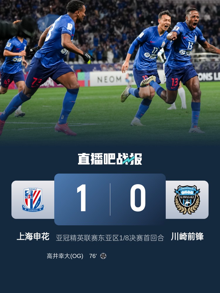 3月6日訊 亞冠精英聯(lián)賽1/8決賽首回合,上海申花主場1-0擊敗川崎前鋒,取得先機,兩隊次回合將在川崎主場再度交鋒。