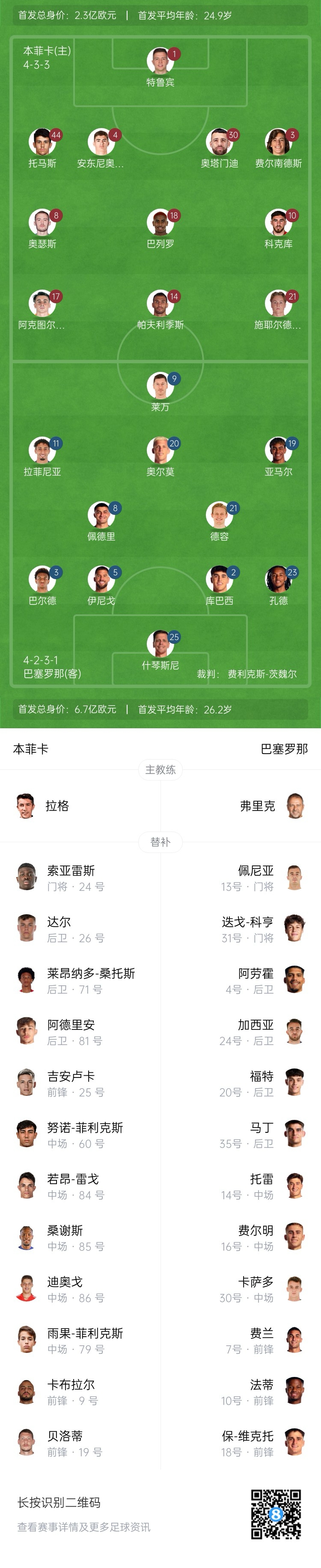 巴薩替補:13-佩尼亞、31-迭戈-科亨、4-阿勞霍、7-費蘭-托雷斯、10-法蒂、14-巴勃羅-托雷、16-費爾明、17-卡薩多、18-保-維克托、24-埃里克-加西亞、32-赫克托-福特、35-杰拉德-馬丁