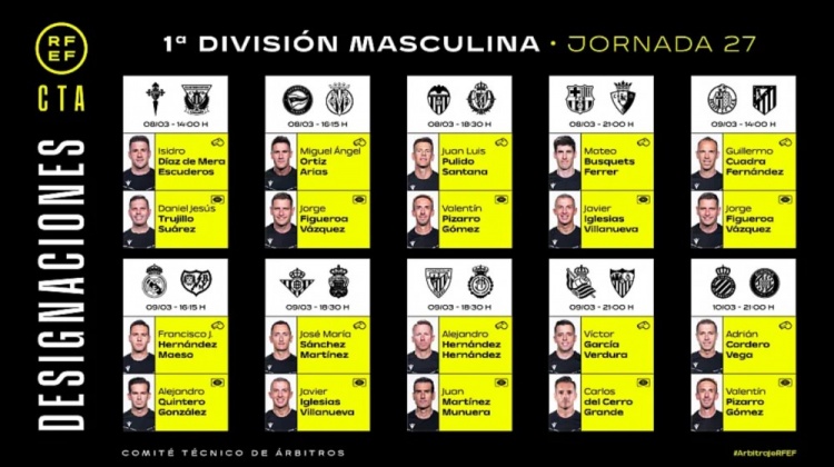 西甲第27輪裁判: