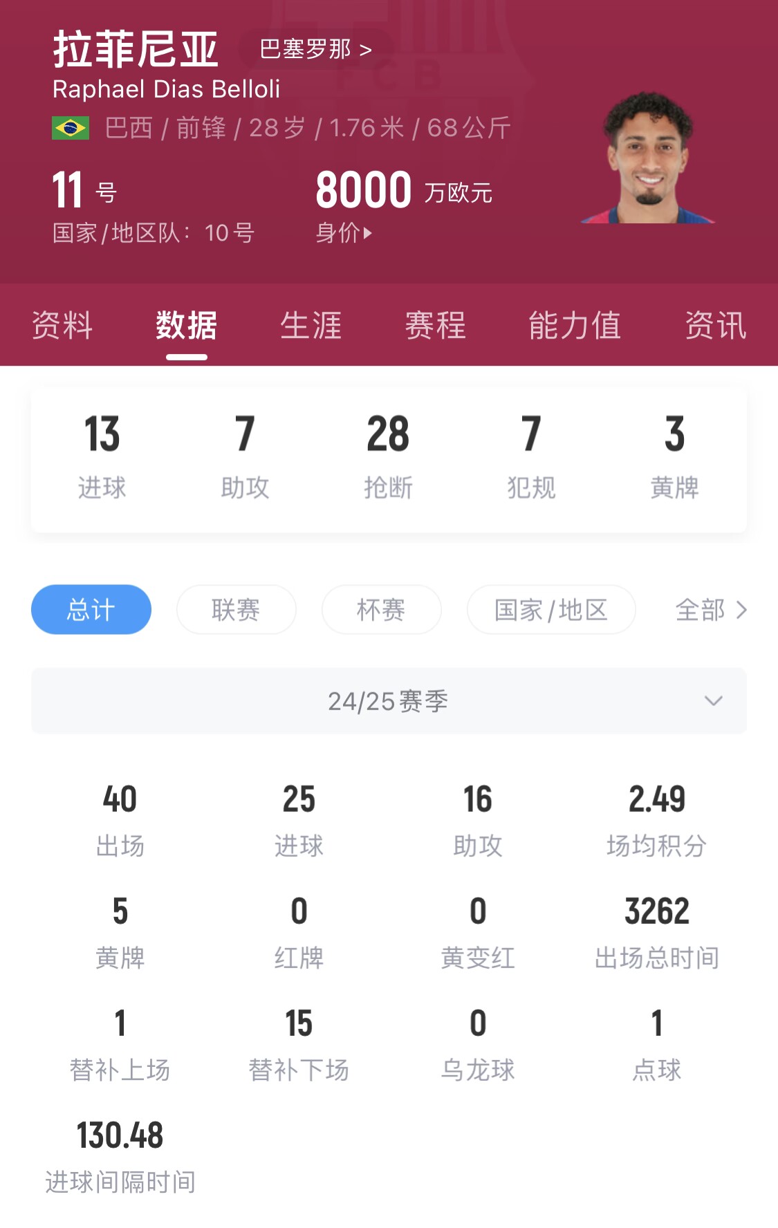 2025-03-06 19:46:09實打?qū)嵉?000萬!拉菲尼亞25球16助,金球獎賠率第3高于維尼修斯
