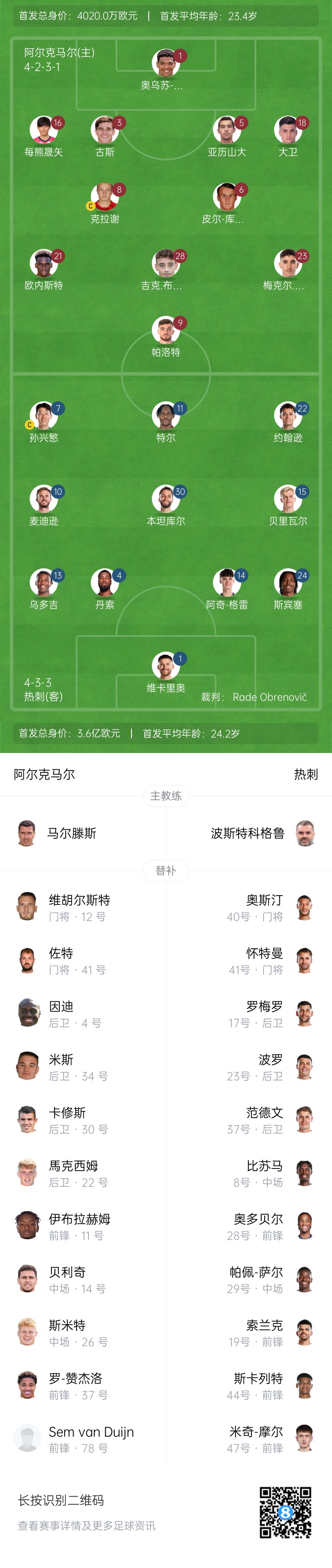 3月7日訊 歐聯(lián)杯16強首回合,阿爾克馬爾主場迎戰(zhàn)熱刺比賽即將打響。賽前首發(fā)出爐。