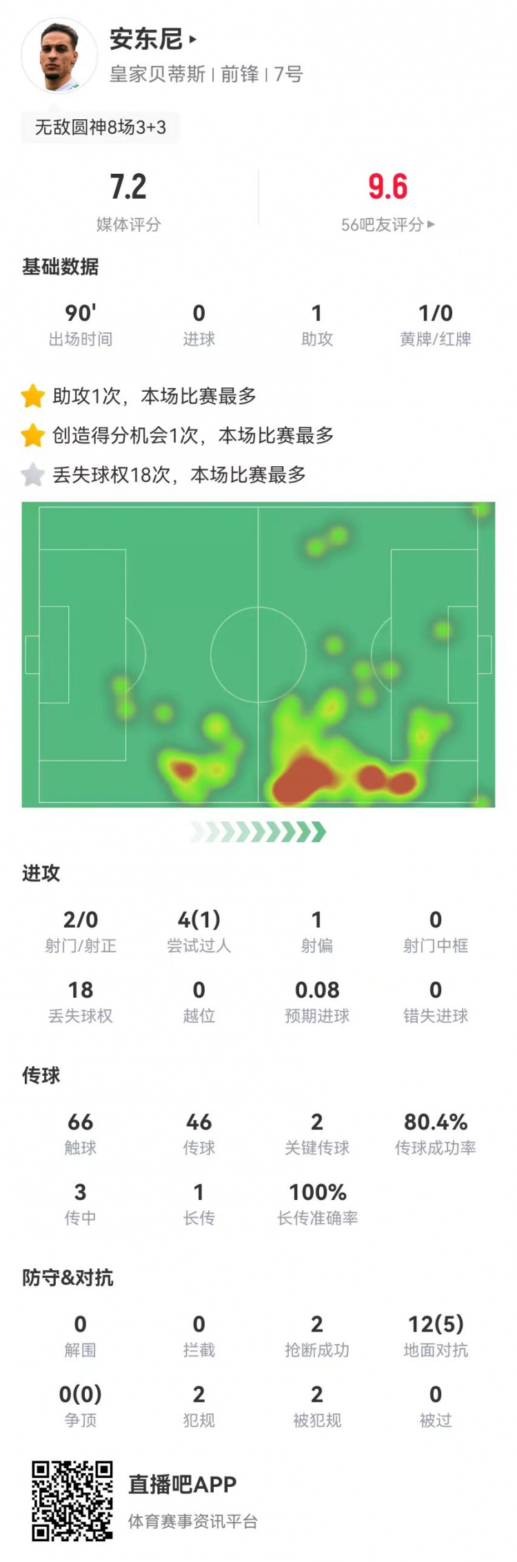 2025-03-07 12:58:43安東尼本場1助攻2關(guān)鍵傳球 12對抗5成功+18丟失球權(quán) 2搶斷2造犯規(guī)
