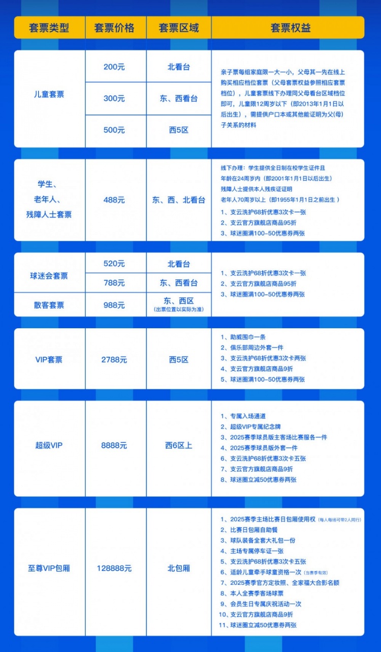?二、2025賽季主場(chǎng)套票銷(xiāo)售細(xì)則: