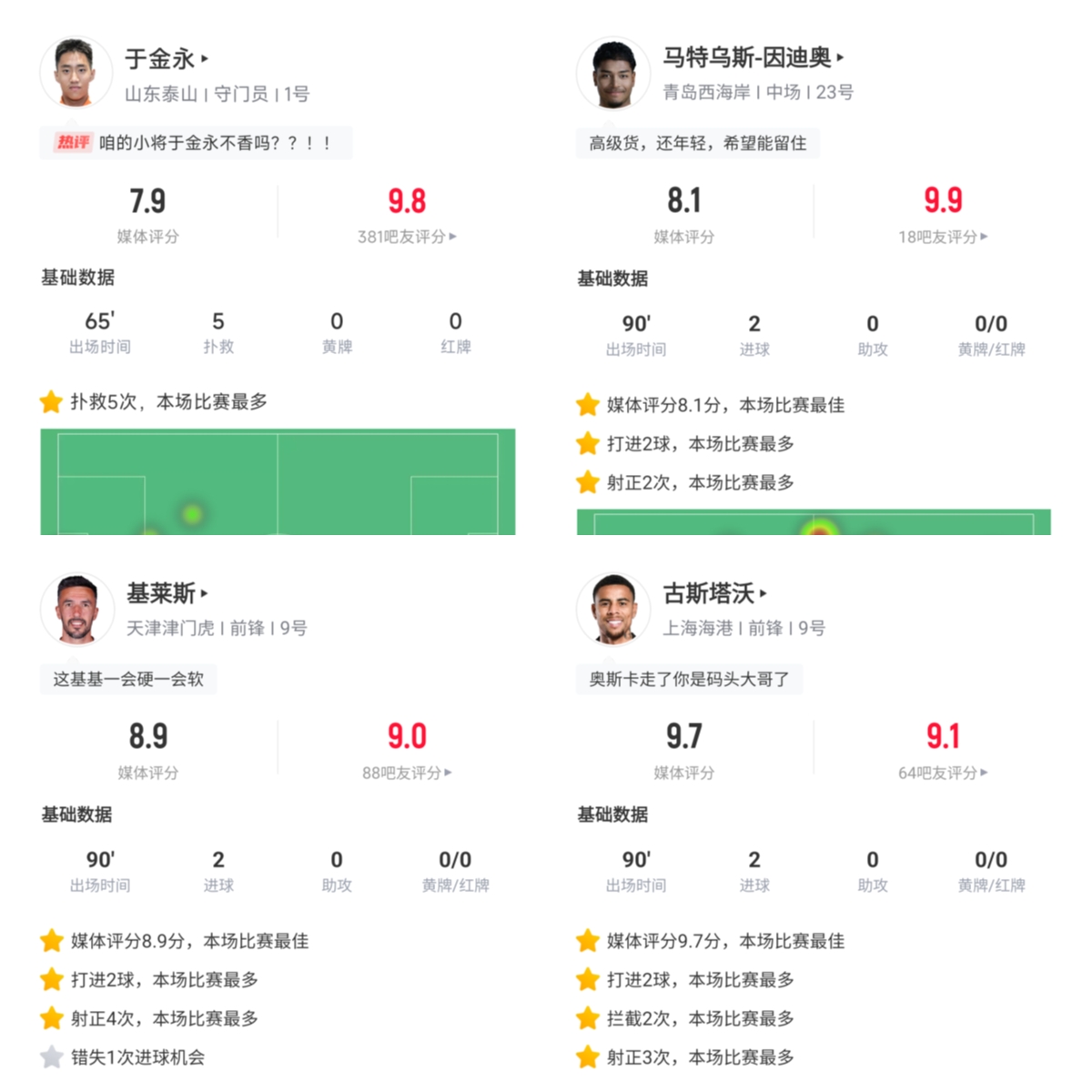 2025-02-24 16:06:52【直播吧】中超首輪最佳球員:于金永險(xiǎn)勝,得票率僅多基萊斯1.7%