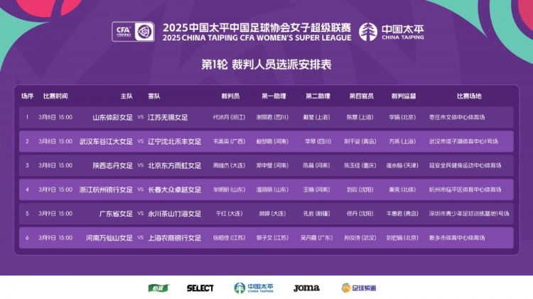 2025-03-08 18:29:162025中國(guó)太平女超聯(lián)賽第1輪 裁判人員選派名單 ???