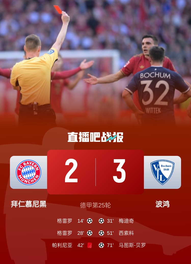 2025-03-09 03:45:37在德甲落后拜仁2球但最終逆轉(zhuǎn)獲勝!波鴻是歷史第4隊