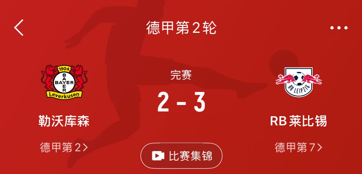 2025-03-09 03:46:56大型翻車現(xiàn)場(chǎng)!勒沃庫森德甲23輪不敗被終結(jié),上次輸是半年前