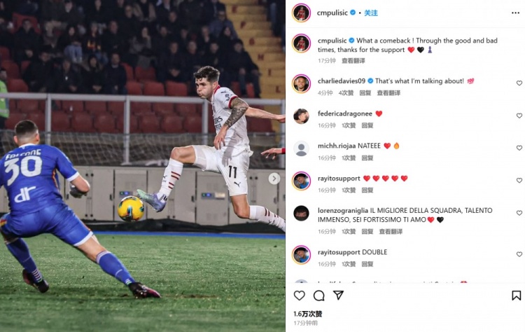 2025-03-09 12:15:16普利西奇社媒曬進(jìn)球照:多棒的逆轉(zhuǎn)!感謝球迷們始終不渝的支持