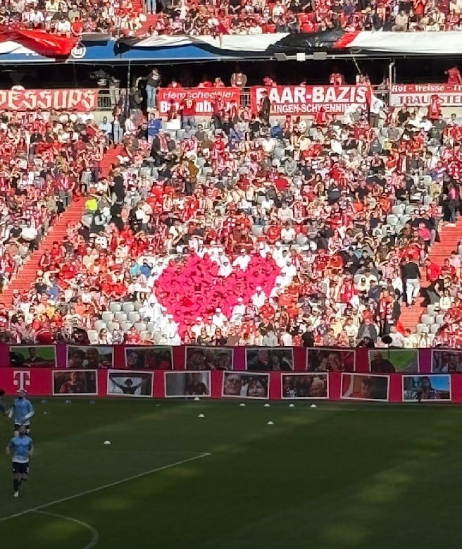 3月9日訊 本輪德甲,拜仁在主場2-3不敵波鴻。《圖片報》報道,拜仁安聯球場看臺上標志性的德國電信“T”字形圖案在本場比賽被心形圖案取代。