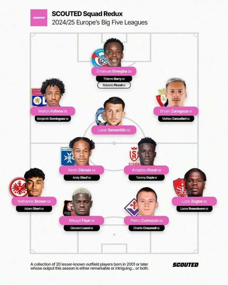 2025-03-09 23:11:41Scouted評選五大聯(lián)賽值得關注的U23球員:歐塞爾的達努瓦入選