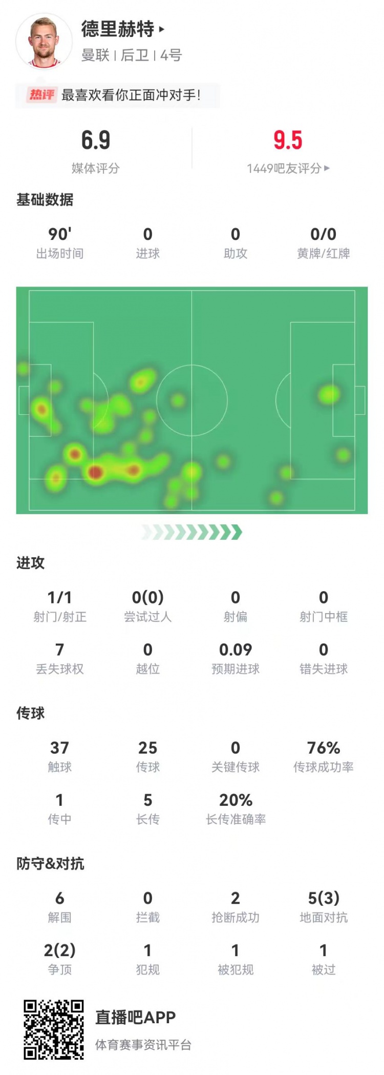 2025-03-10 05:59:17定海神針!德里赫特本場6解圍2搶斷 7對抗5成功 獲評6.9分