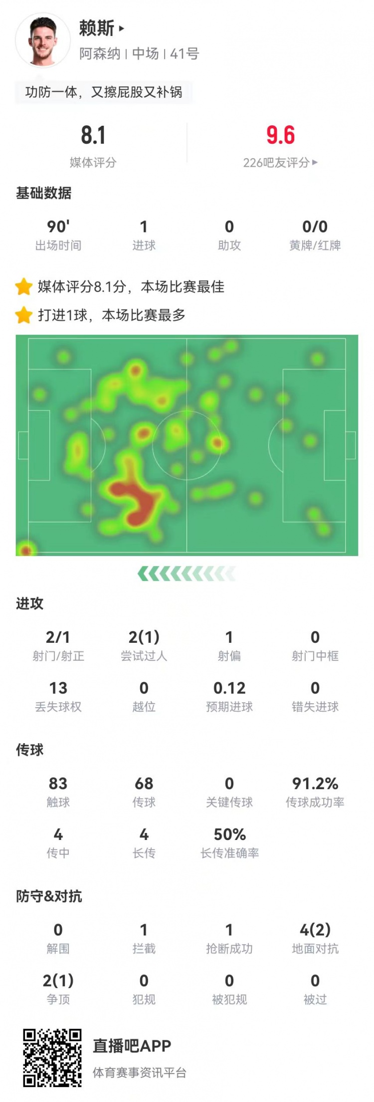 2025-03-10 06:00:12賴斯本場(chǎng)1球+1救險(xiǎn) 6對(duì)抗3成功 4傳中0成功 獲評(píng)8.1分全場(chǎng)最高