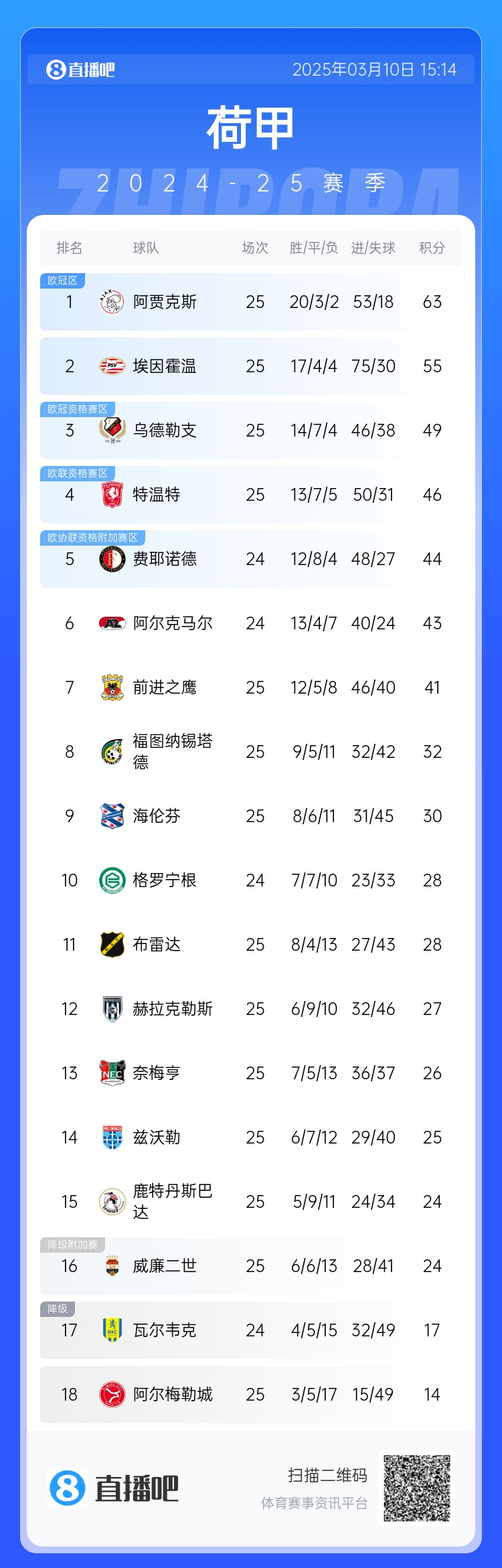 2025-03-10 20:54:07賈府回來了?35歲少帥率領(lǐng)阿賈克斯豪取荷甲10連勝,剩9輪8分領(lǐng)跑